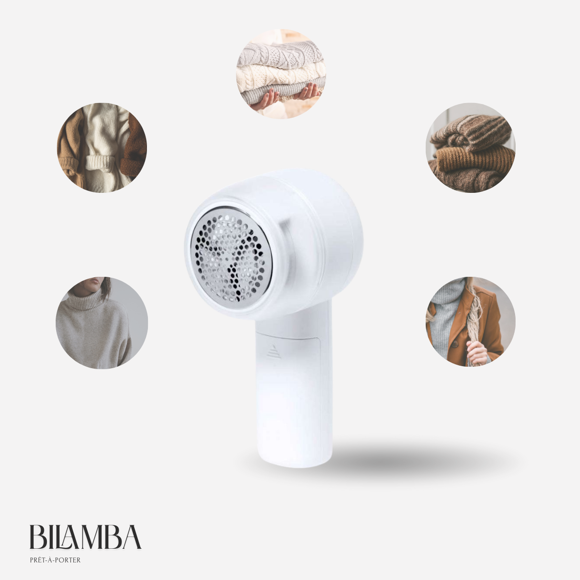 Le rasoir anti-peluche BILAMBA élimine efficacement bouloches pour redonner instantanément un aspect neuf à tous vos textiles.